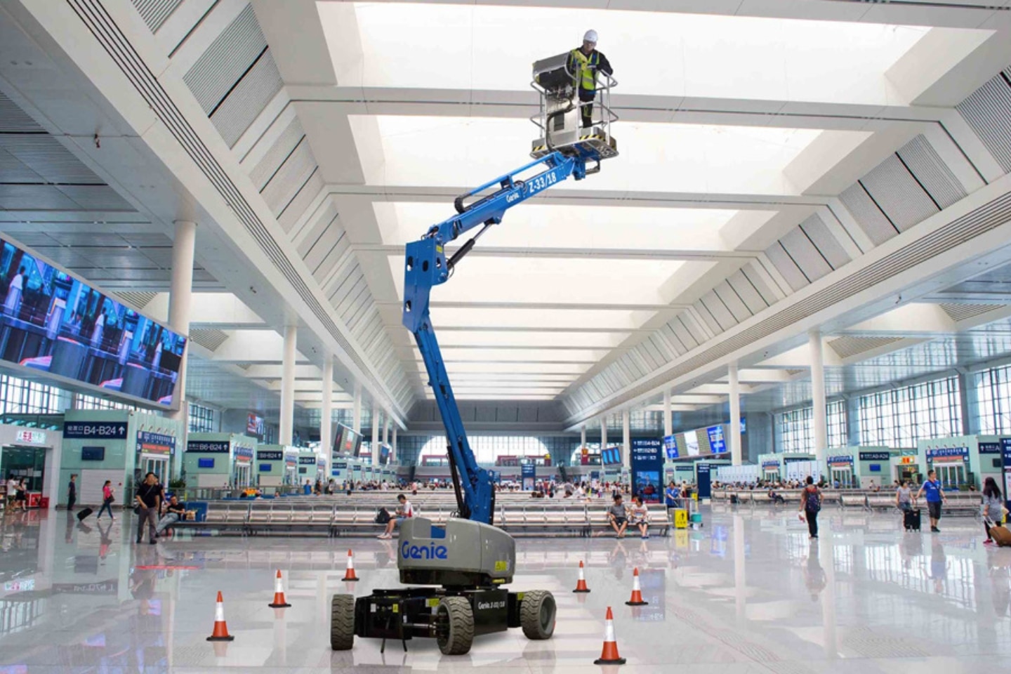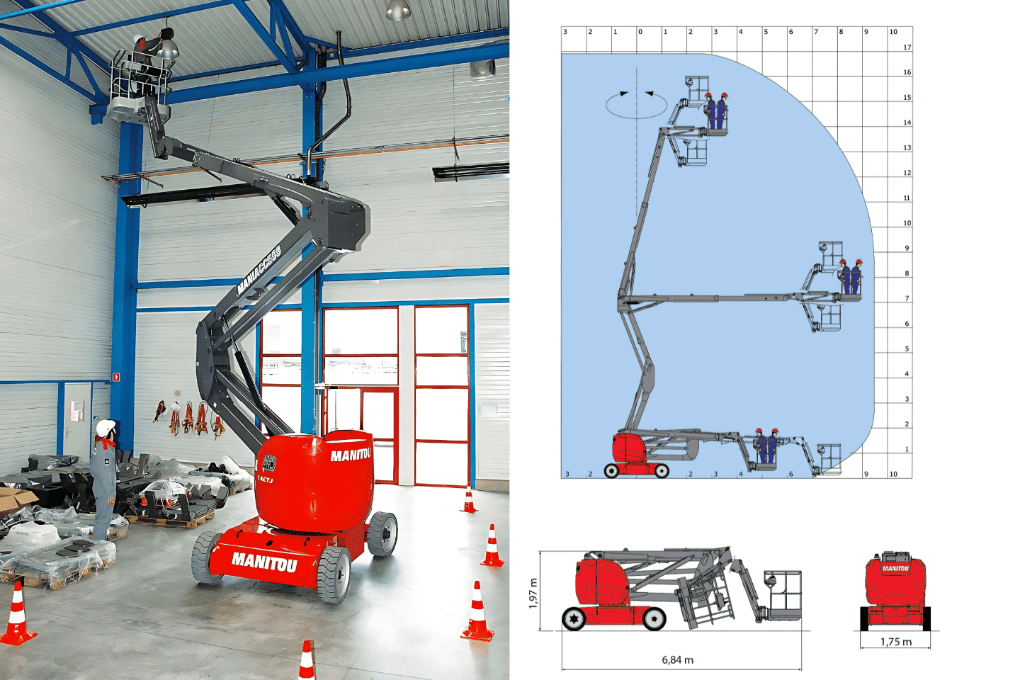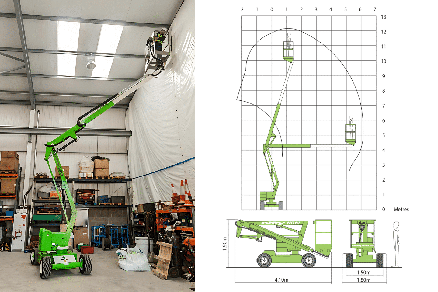 De elektrische knikhoogwerker combineert reikwijdte met een bepaalde knikhoogte, hierdoor zijn zelfs moeilijk bereikbare plekken erg makkelijk te bereiken. Je kunt knikarmhoogwerkers verrijden met het platform op volle hoogte. Dit resulteert in efficiënter werken en het scheelt je veel tijd. Door de elektrisch aangedreven motor zijn deze toestellen ook uitstootloos en zeer stil.