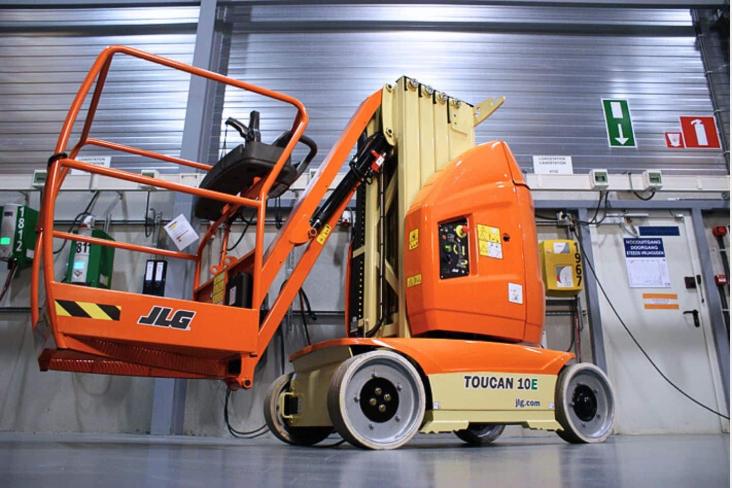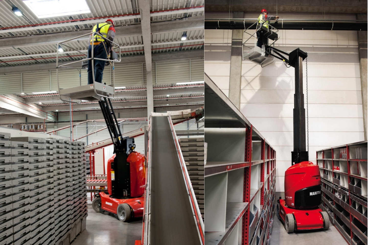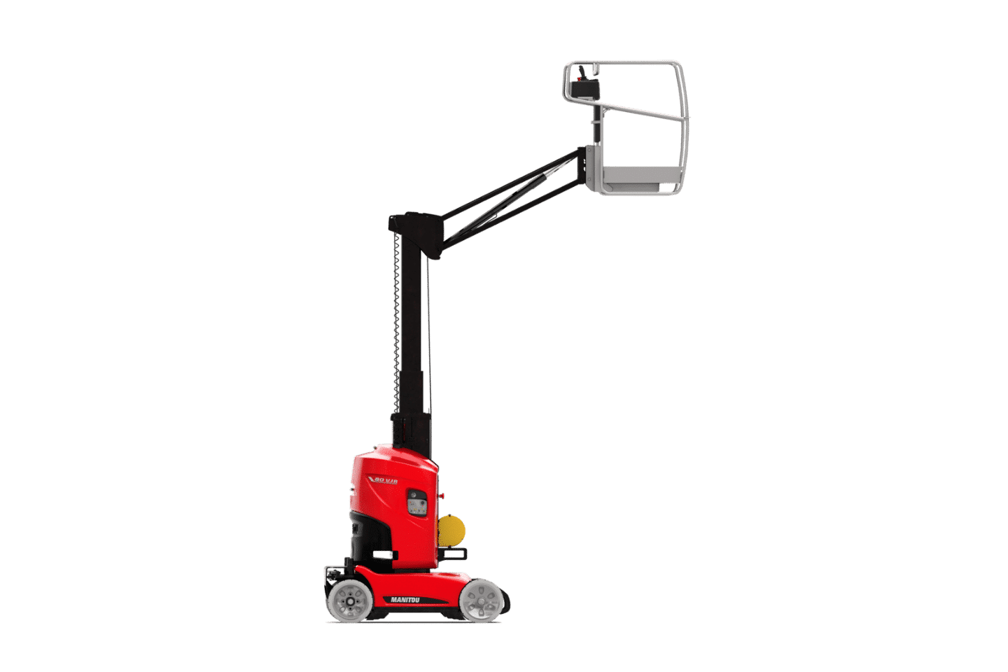 Met een verticale masthoogwerker, wordt men verticaal omhoog gehesen tot op een bepaalde werkhoogte.