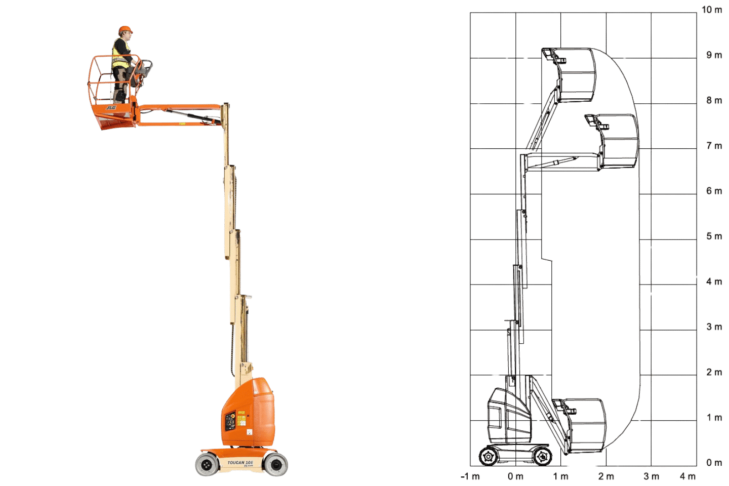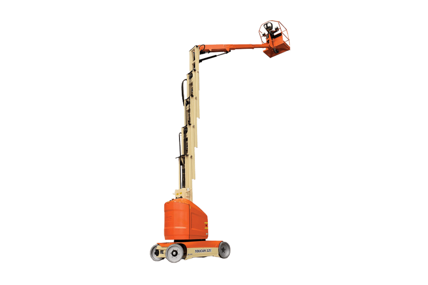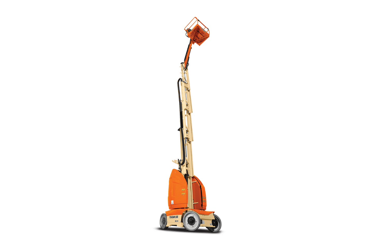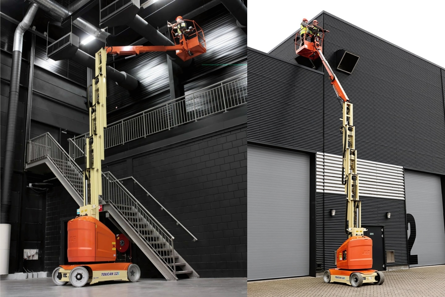 Met een verticale masthoogwerker, wordt men verticaal omhoog gehesen tot op een bepaalde werkhoogte.