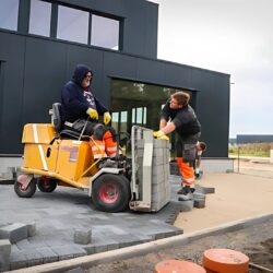 De Rollmops 2 X 4 is een lichte, snelle en uiterst wendbare klinkertransportmachine. De Rollmops 2X4 wordt door een sterke maar zuinige dieselmotor aangedreven op de twee voorste wielen. Door het lage basisgewicht en de uitgekiende verdeling op de vier wielenbanden kan je met dit model zonder problemen op de pas gelegde klinkers rijden. De Rollmops 2 X 4 draait op een erg soepele manier rond de as. Samen met de stenentransportklem kunnen ook een borstel en een handige puinbak met inlegvel geleverd worden.