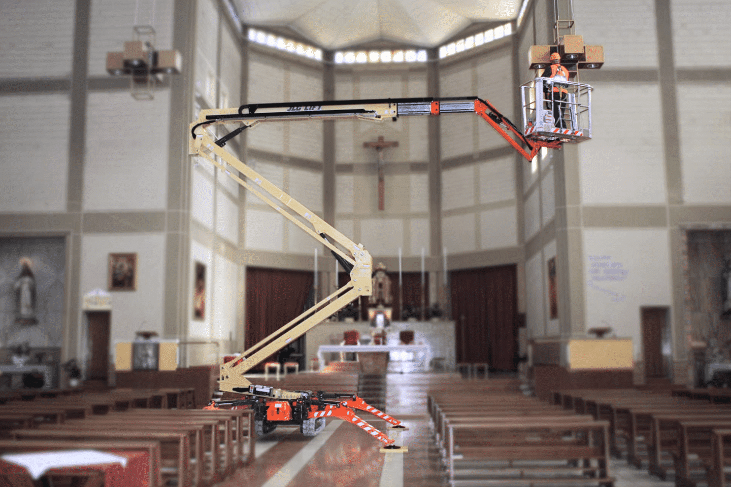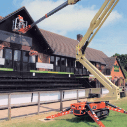 Een spinhoogwerker is een compacte hoogwerker op rupsen en poten. Het rupsonderstel zorgt ervoor dat spinhoogwerker kan rijden en dus mobiel is. De poten maken dat de spinhoogwerker stabiel en genivelleerd staat tijdens het werken.